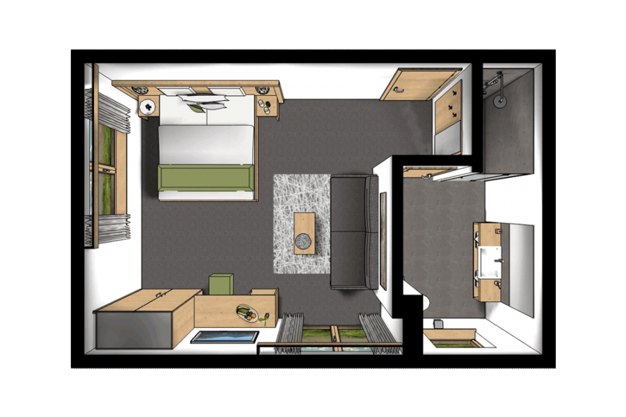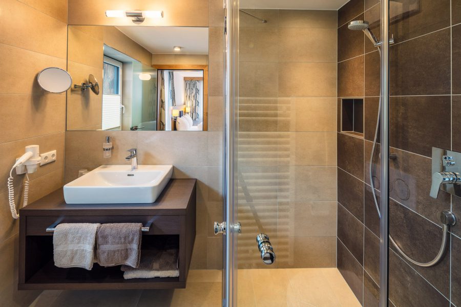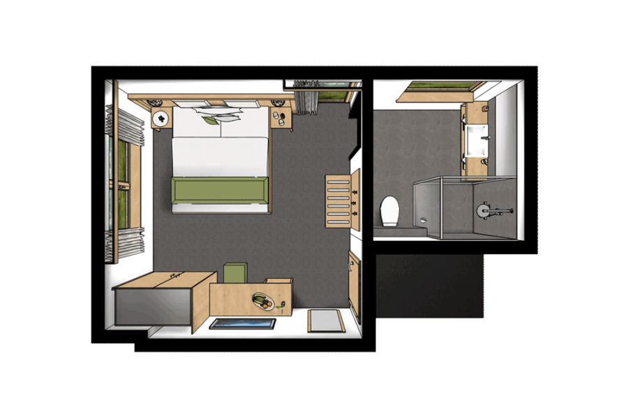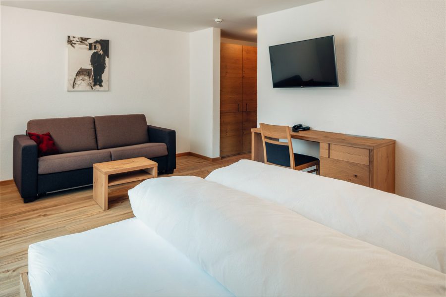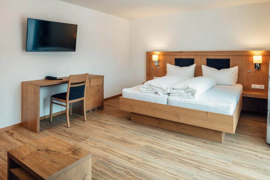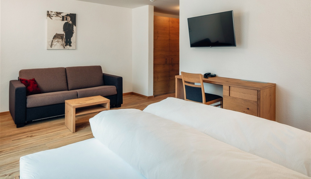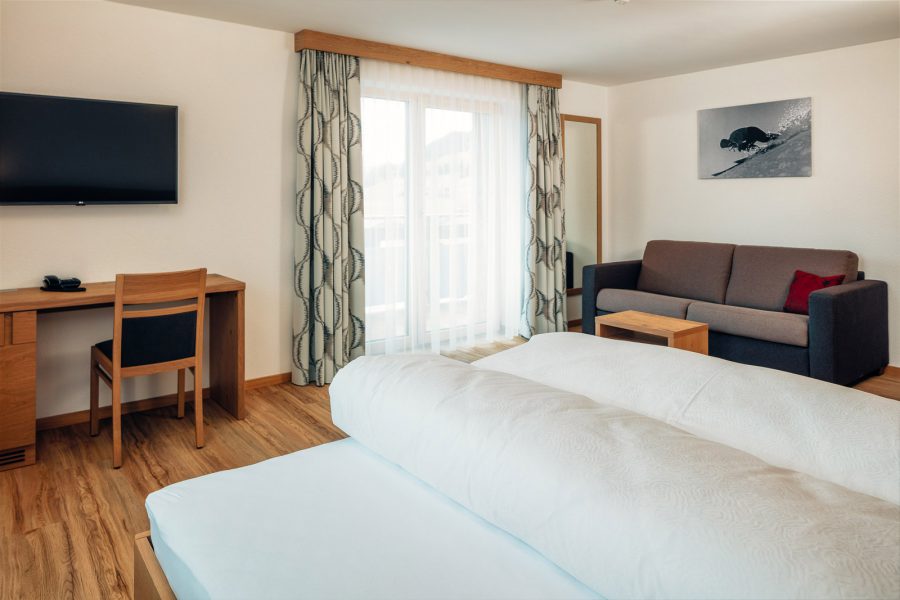 Das Komfortzimmer Almrose bietet mit seinen 33 Quadratmetern besonders viel Platz. Dieses Zimmer hat einen südseitigen Balkon, der Sonnenbäder mit einmaligem Ausblick garantiert. Ebenfalls zeichnet sich das Zimmer durch einen großzügigen Nassbereich mit getrenntem WC aus.